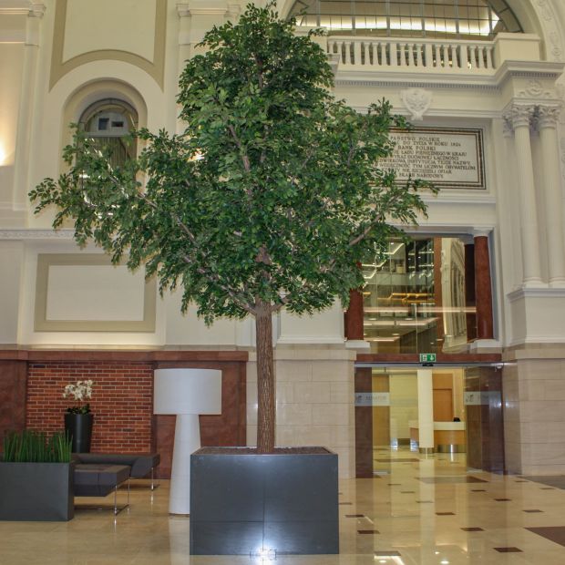 Sztuczne drzewa w biurowcu mogą być używane do ożywienia przestrzeni i poprawy estetyki wnętrza. Drzewa te mogą również wprowadzić do biura trochę zieleni i naturalnego piękna, co wpłynie na poprawę samopoczucia i produktywności pracowników. Ponadto, drzewa sztuczne mogą zapewnić dodatkową izolację akustyczną, chroniąc pracowników przed hałasem.Drzewa sztuczne w banku wykorzystywane są do dekoracji i tworzenia przyjemnego, świeżego wyglądu wnętrza. Mogą być również wykorzystywane w celu wytworzenia przyjaznego, naturalnego środowiska, które może pomóc klientom w pozostaniu spokojnym i skupionym podczas dokonywania transakcji. Dodatkowo, sztuczne drzewa w banku mogą również stanowić dodatkową warstwę bezpieczeństwa, jako że mogą zapewnić zasłonę dla monitoringu wideo lub skutecznie zasłonić niepotrzebne widoki.